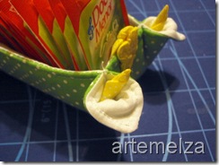 com um copo de leite. Então…costurei um pistilo feito com tecido